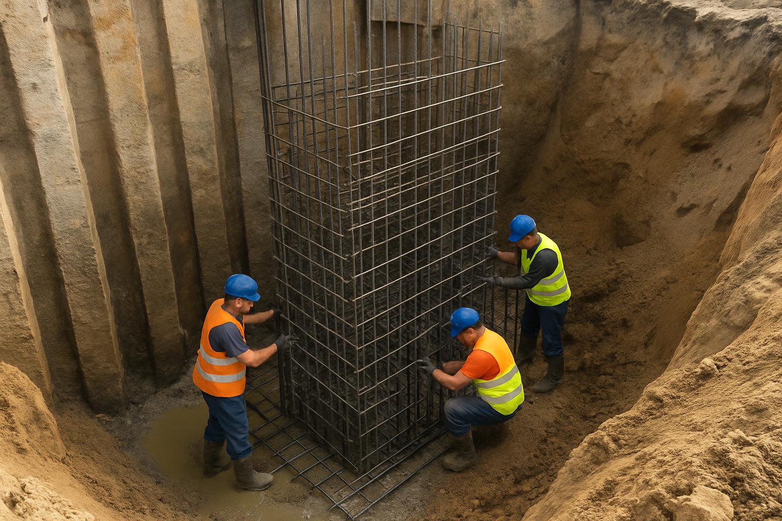 إنشاء أساسات وجدران ستائر من الخرسانة المسلحة،